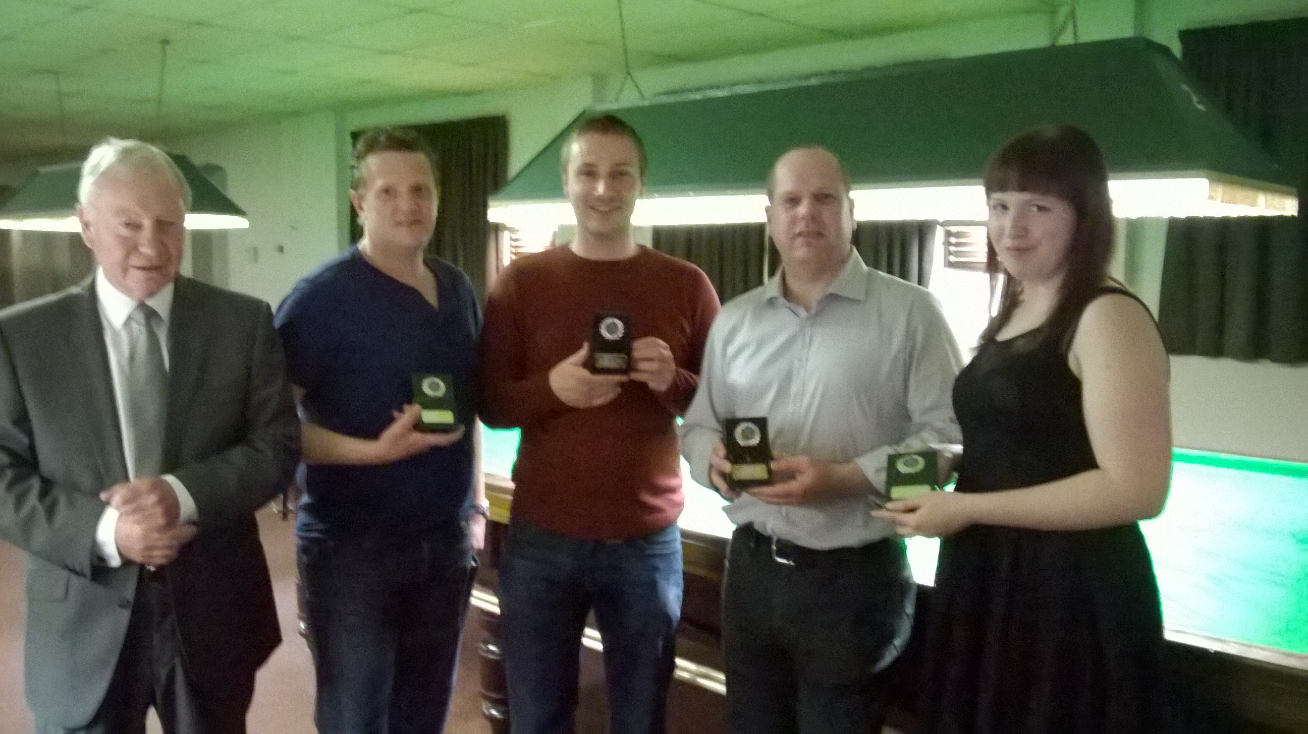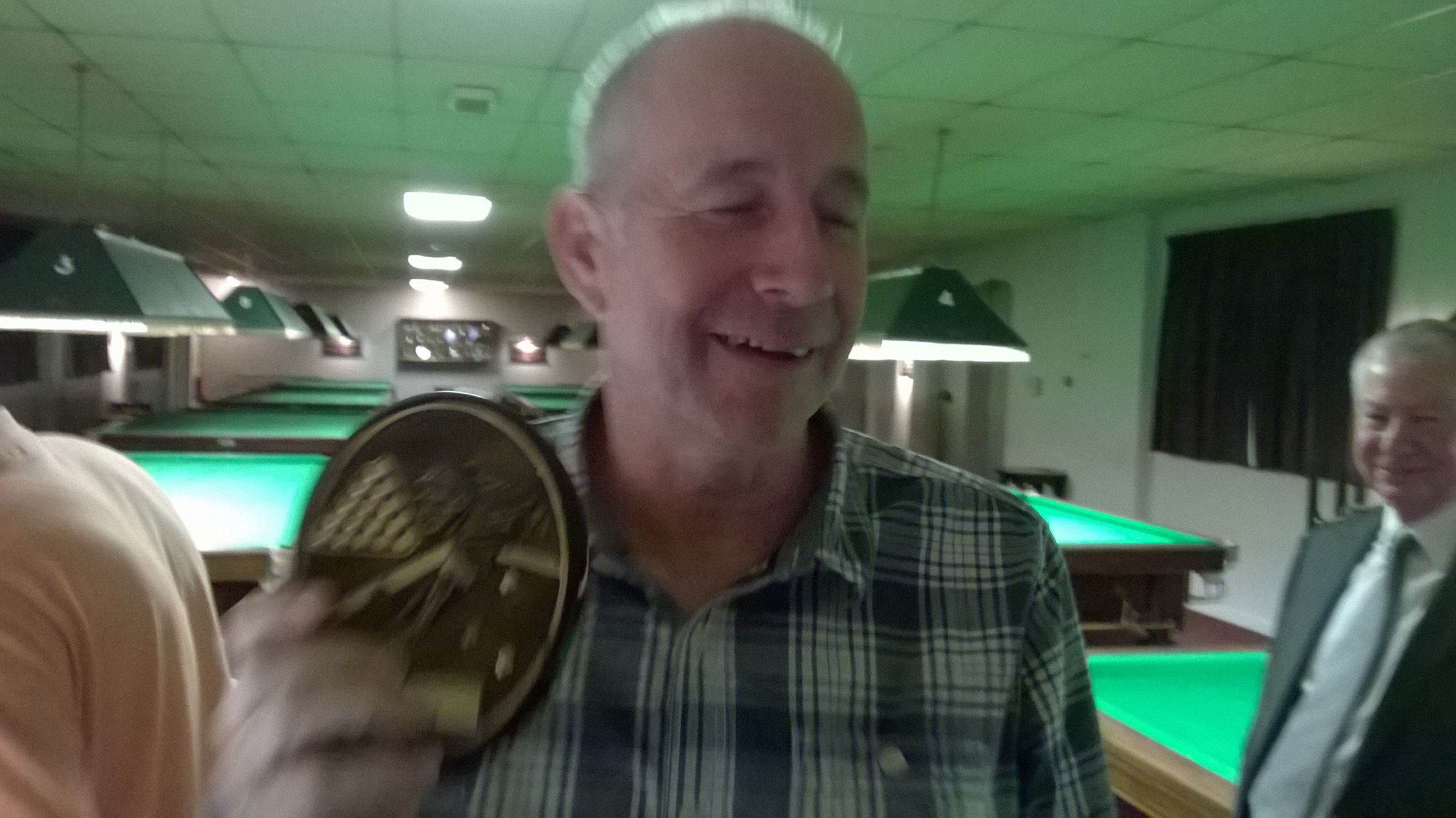 IN ONLY HIS SECOND SEASON BACK PLAYING IN THE LEAGUE AFTER A LENGTHY ABSENCE, JEREMY HELPED THE SNOOKER FLUKES TO RETAIN THE FOUR PLAYER DIVISION LEAGUE TITLE, REACHED THE SEMI FINALS OF THE LEAGUE CUP, AND FINISHED AS RUNNER UP WITH HIS PARTNER JOHN MANLEY IN THE HANDICAP DOUBLES. JEREMY ALSO WON THE HIGHEST BREAK TROPHIES IN BOTH THE FOUR PLAYER DIVISION [51] AND THE HANDICAP DOUBLES [66].